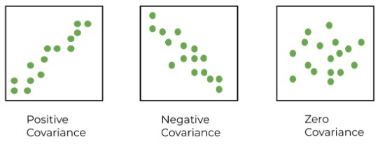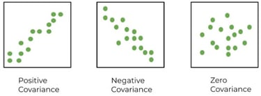 Covariance measures whether two variables move in the same direction. If both variables increase or decrease together, the covariance is positive. If one increases while the other decreases, it's negative.